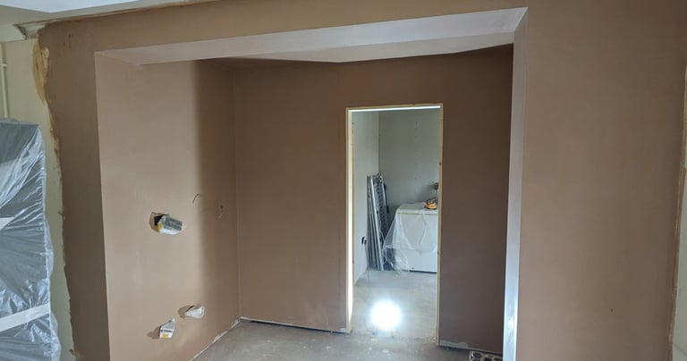 Dry-lining is an effective solution for creating straight, modern walls quickly and efficiently. We install plasterboard to masonry or studwork, providing a solid, professional base ready for skimming and finishing.